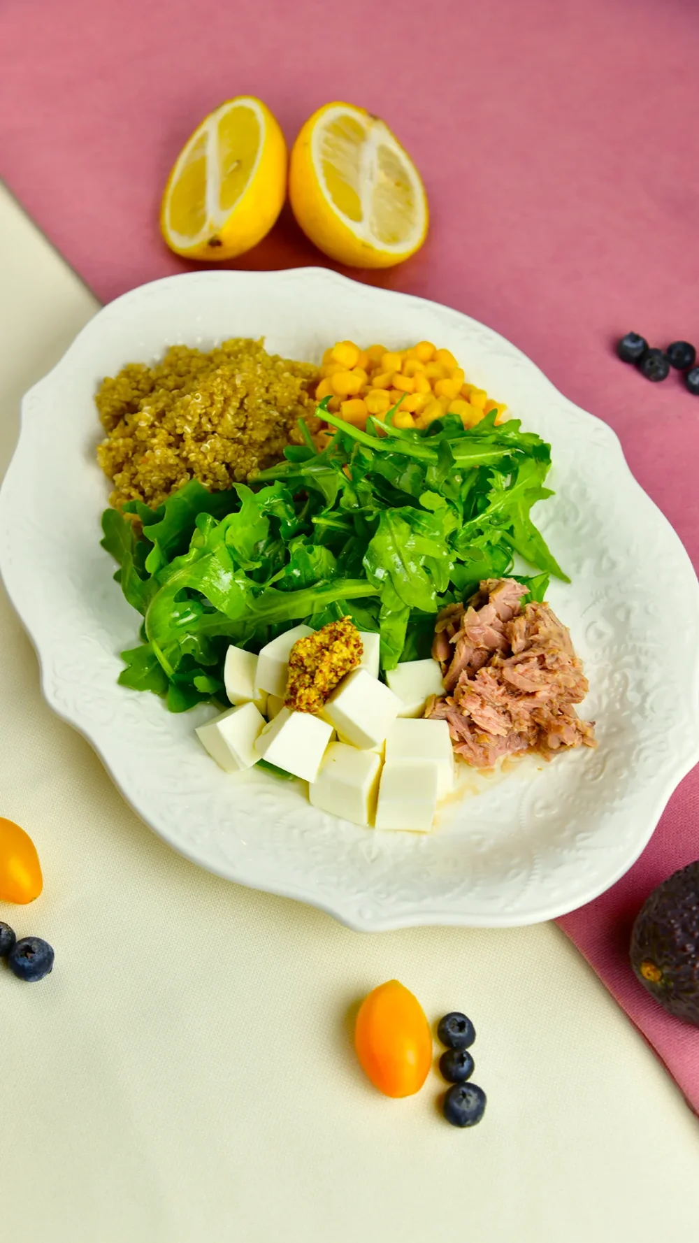 Healthy Bowl 2 3290 (Киноа, тунец, сыр фета, кукуруза, рукола с зернистой горчицей и оливковым маслом, семена льна) 370 г / 438 ккал / Б 32.8 / Ж 21.4 / У 27.2