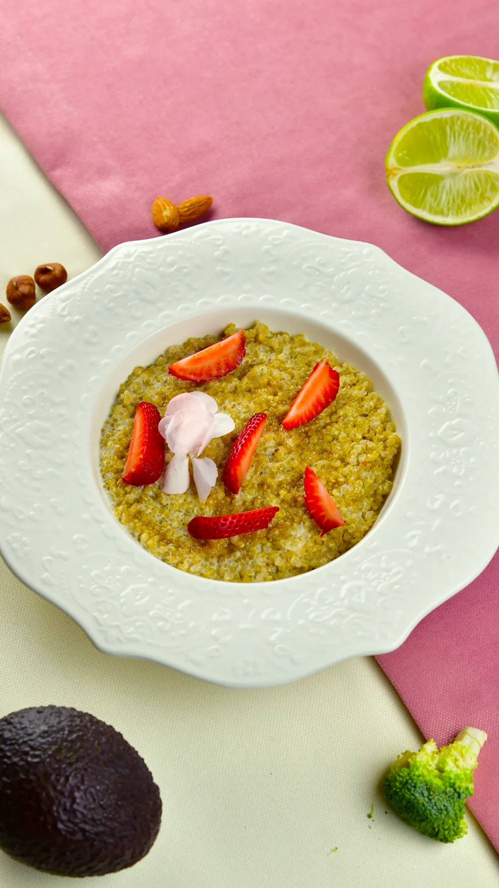Каша с киноа на кокосовом молоке со сливочной карамелью 1790 (Киноа, кокосовое молоко, клубника, сливочная карамель без сахара) 200 г / 198 ккал / Б 6.1 / Ж 6.8 / У 27.4