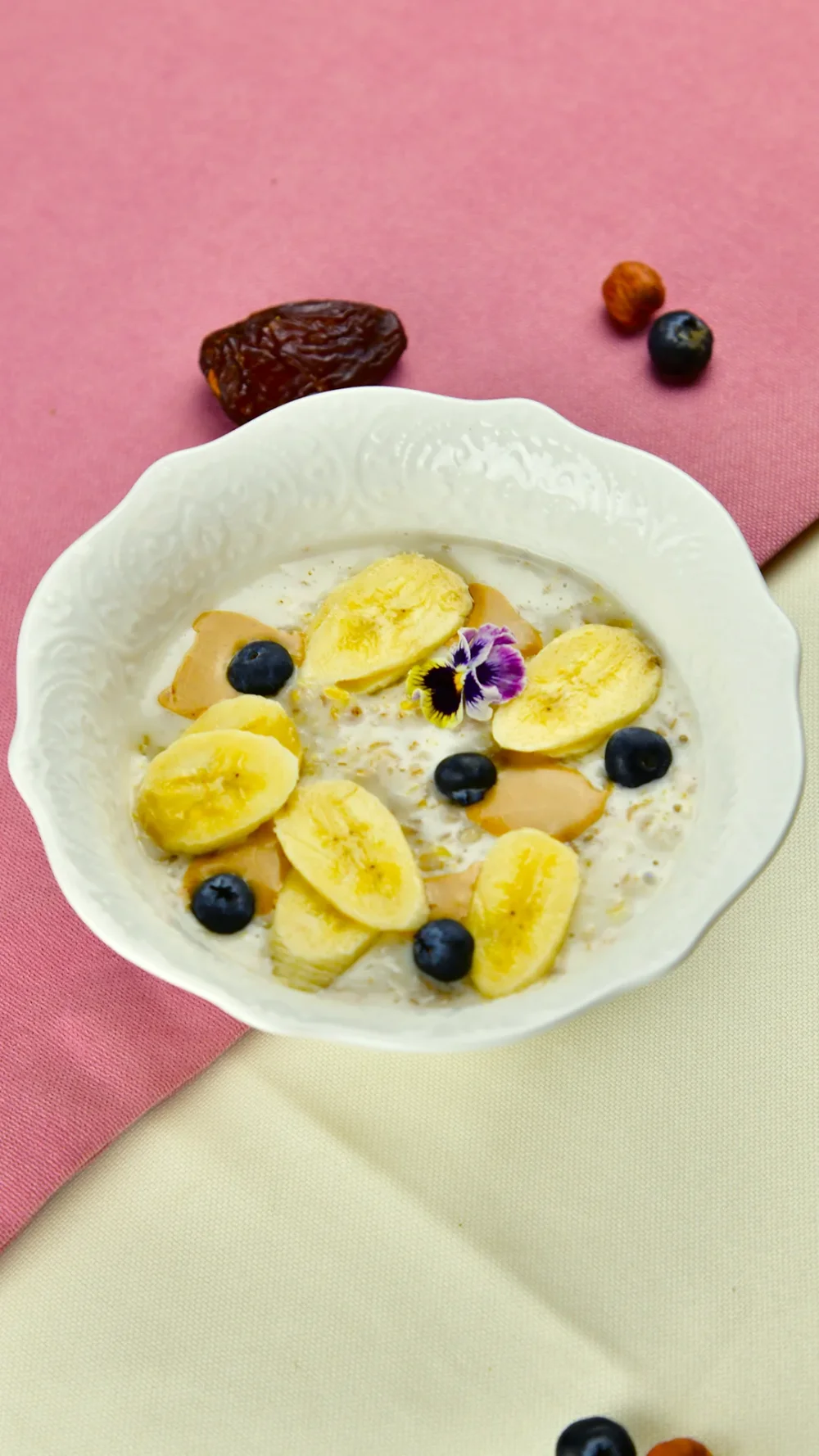 Овсяная каша с арахисовой пастой, бананом и ягодами 1790 (Овсяные хлопья, кокосовое молоко, арахисовая паста, банан, черника) 310 г / 265 ккал / Б 9.8 / Ж 8.6 / У 37.5